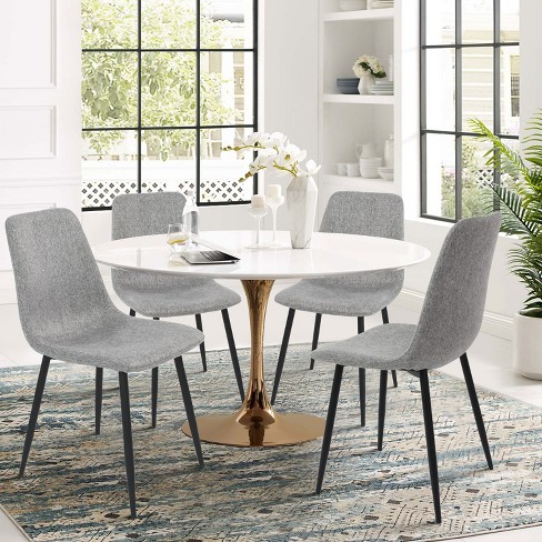 Bingo Dining Chairs Set of 4 Gray Upholstered Dining Chair with Stainless Steel Metal Legs Maison Boucle Very well made.